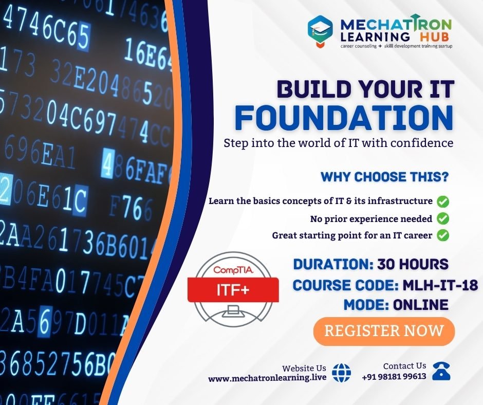 This 30-hour hands-on course introduces participants to basic IT concepts, terminology, infrastructure, software development, security, and database fundamentals. Learners will build practical skills through guided labs, demonstrations, and case studies while developing the confidence to pursue roles in IT support, digital workplaces, or further certifications such as CompTIA A+, Network+, or Security+.