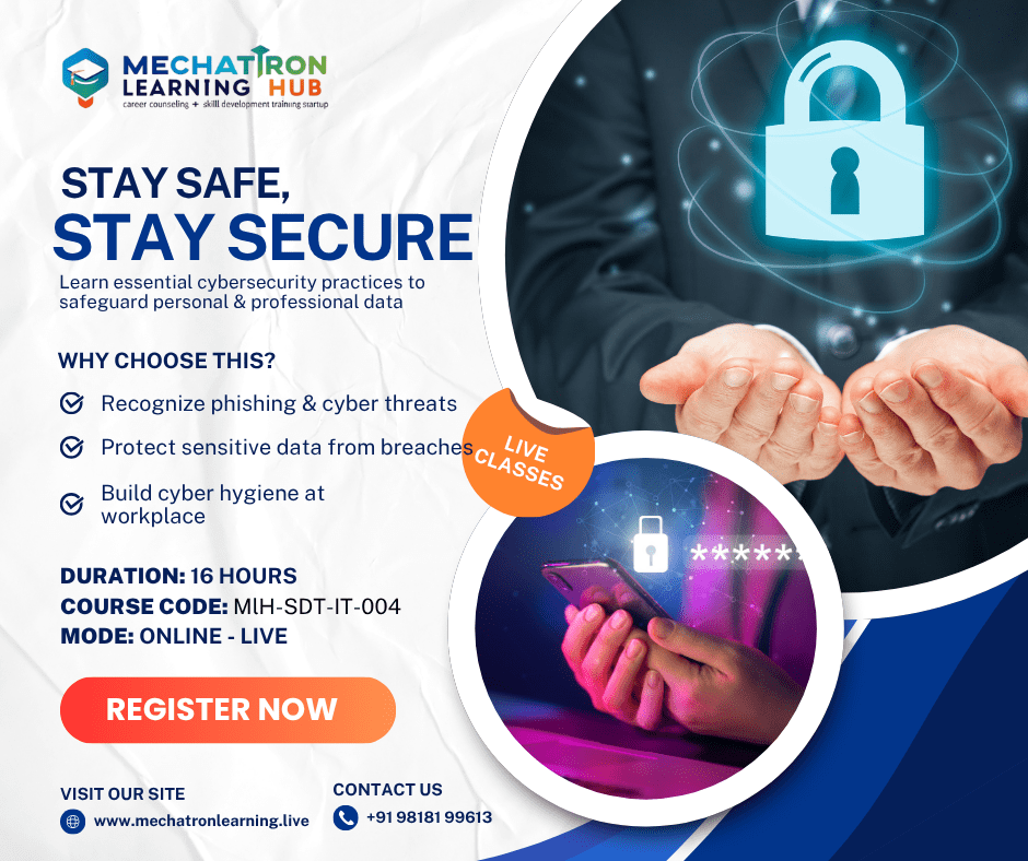This program introduces learners to the fundamentals of cybersecurity, including online safety, system security, network basics, and threat awareness. Through interactive sessions, case studies, and hands-on exercises, participants will gain the confidence to protect personal and professional digital assets. The course is suitable for students preparing for IT roles, professionals transitioning into cybersecurity, and educators introducing cybersecurity concepts.