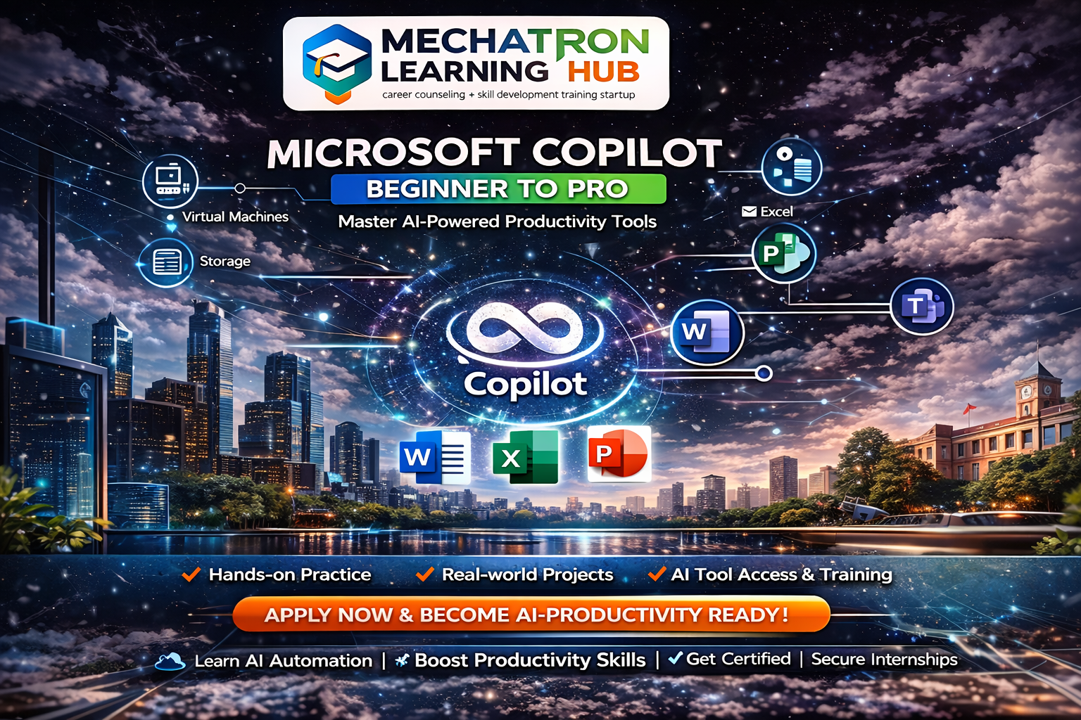 This course is designed to help students master Microsoft Copilot and AI-powered productivity tools. Learn how to use Copilot across Microsoft 365 apps like Word, Excel, PowerPoint, and Teams to automate tasks, generate content, analyze data, and improve efficiency.
