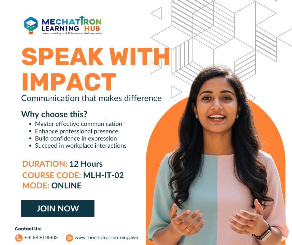 This program helps learners improve spoken communication, build confidence, and develop clarity in personal, academic, and professional interactions. Through interactive exercises, role-plays, and presentations, participants will learn to speak confidently, articulate ideas clearly, and communicate effectively in real-world scenarios. Suitable for students, freshers, professionals, and educators, this course emphasizes practical communication skills that enhance employability and professional presence.